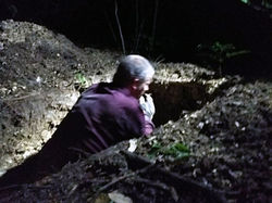 This box is similar to a tomb, but the participant is not immersed in soil, it's more like a cocoon to go through a metamorphosis, this box has a lid made of logs, which is covered by a thick layer of the soil that was dug out.